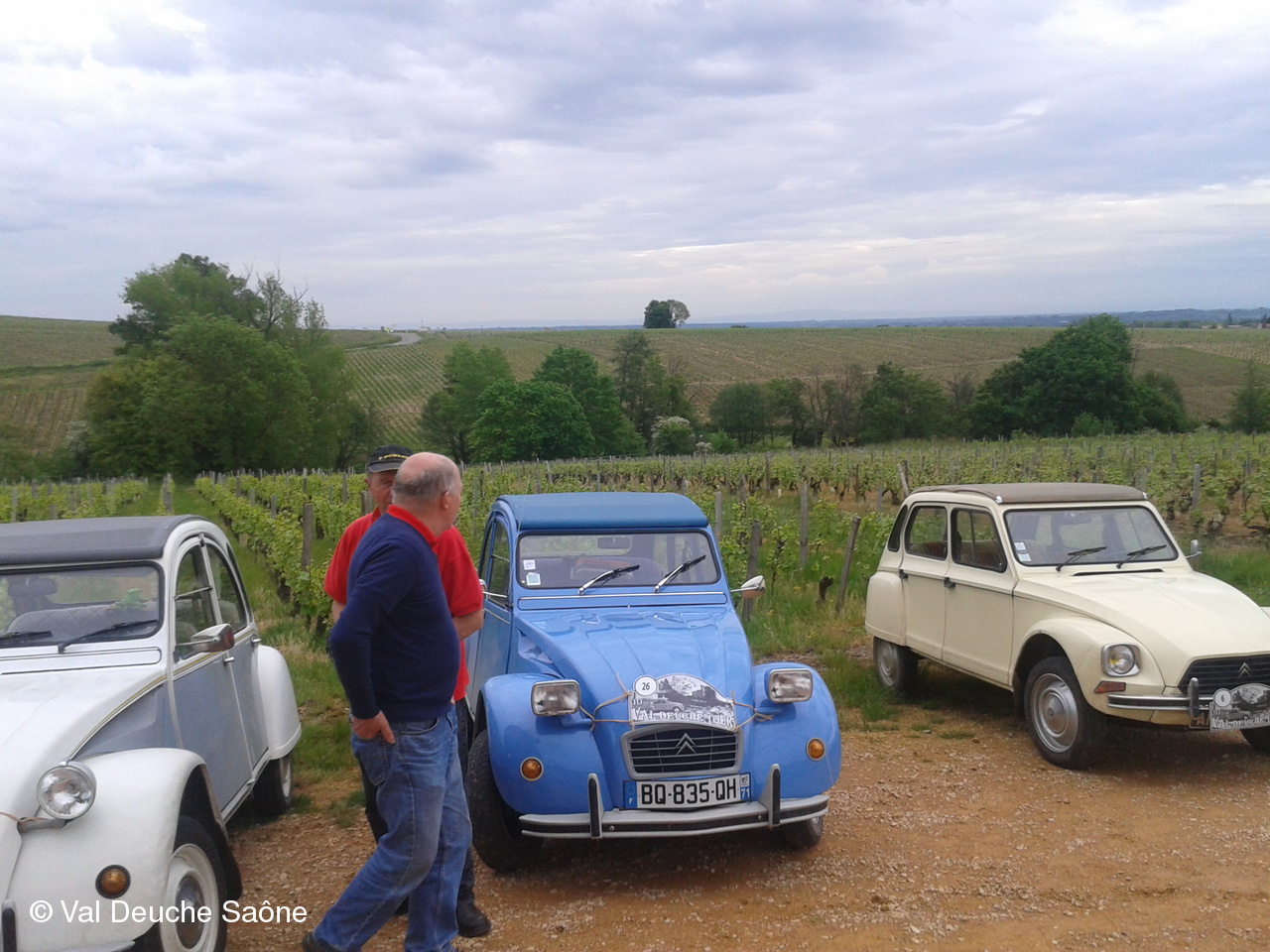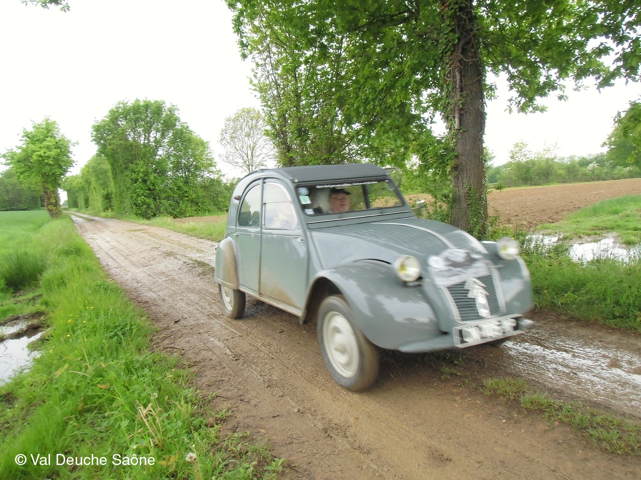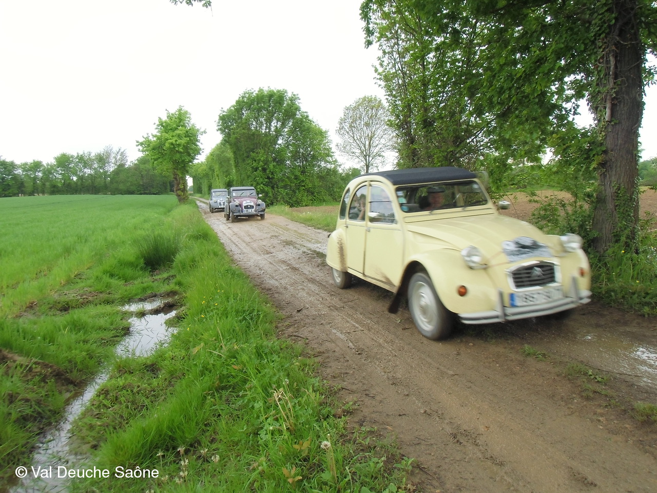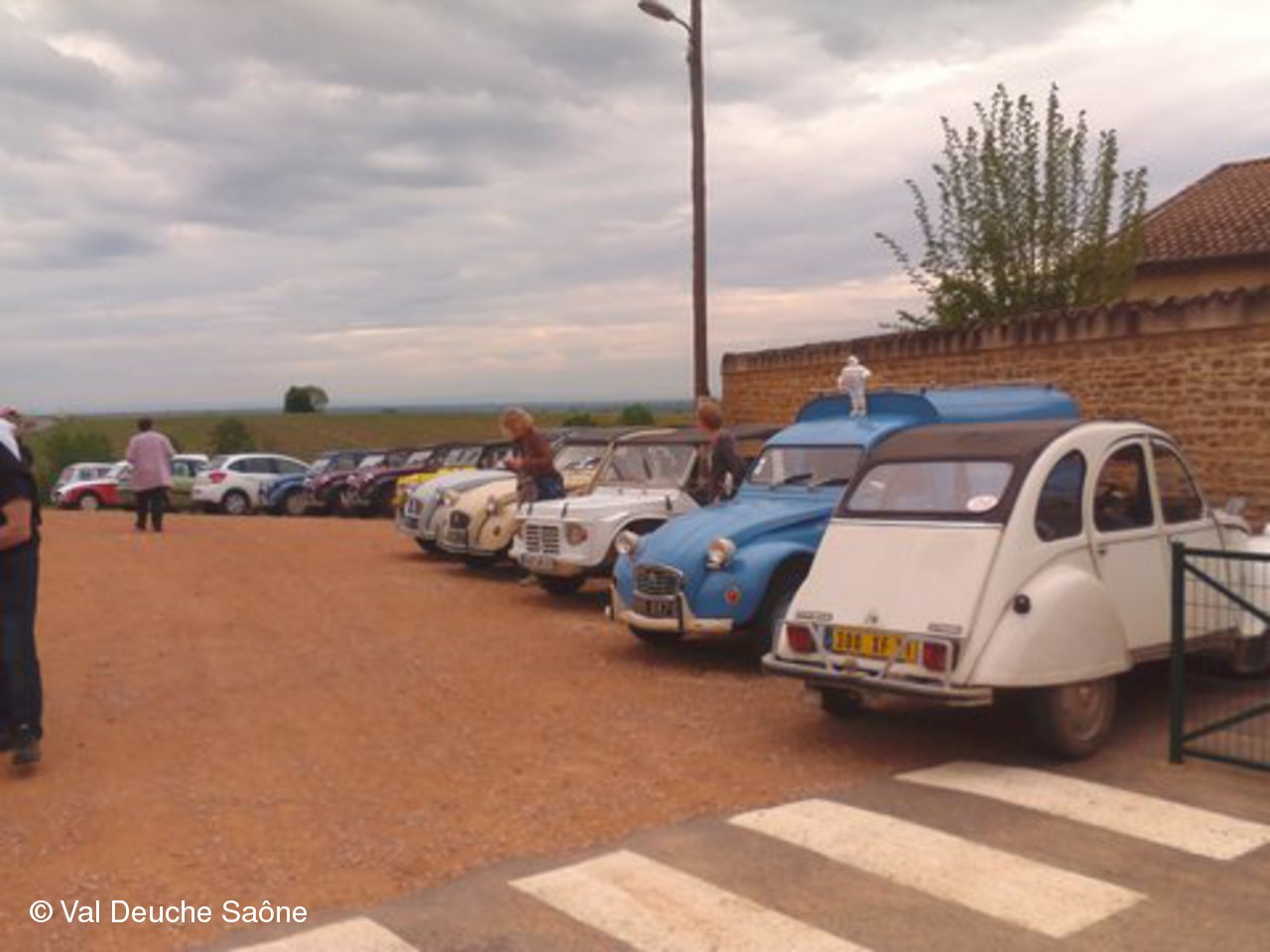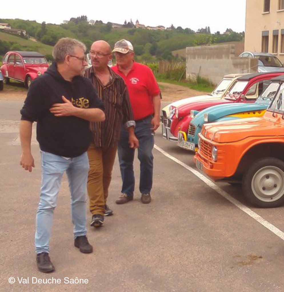 Après le traditionnel café d'accueil, nos 55 équipages venus de Saône et Loire, Bresse, Côte d'Or (6 clubs de 2Cv étaient représentés venant de Dijon, Beaune, Beaujolais, Charolles, Bresse, St Marcel et le Val Deuche) se sont dirigés en direction de la Dombes en passant par St Amour, La Chapelle de Guinchay, St Symphorien d'Ancelles pour franchir le pont de St Romain et arriver à Thoissey. Mais avant, il fallait découvrir la pièce de 2CV qui était cachée dans un sac de sable.