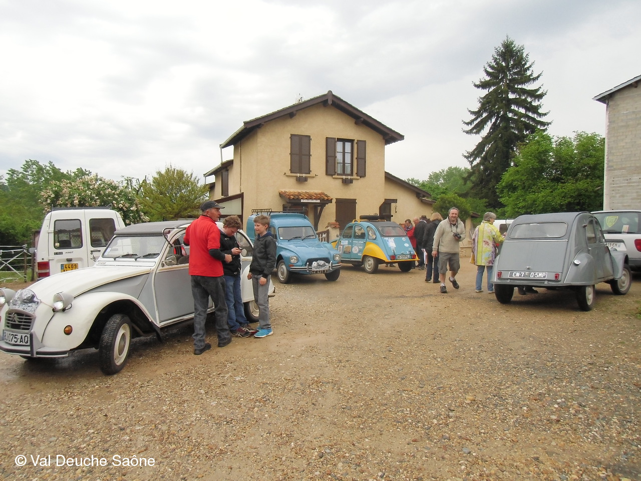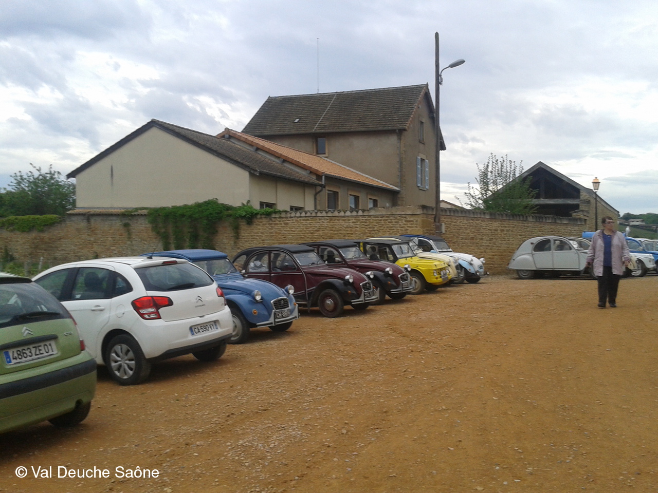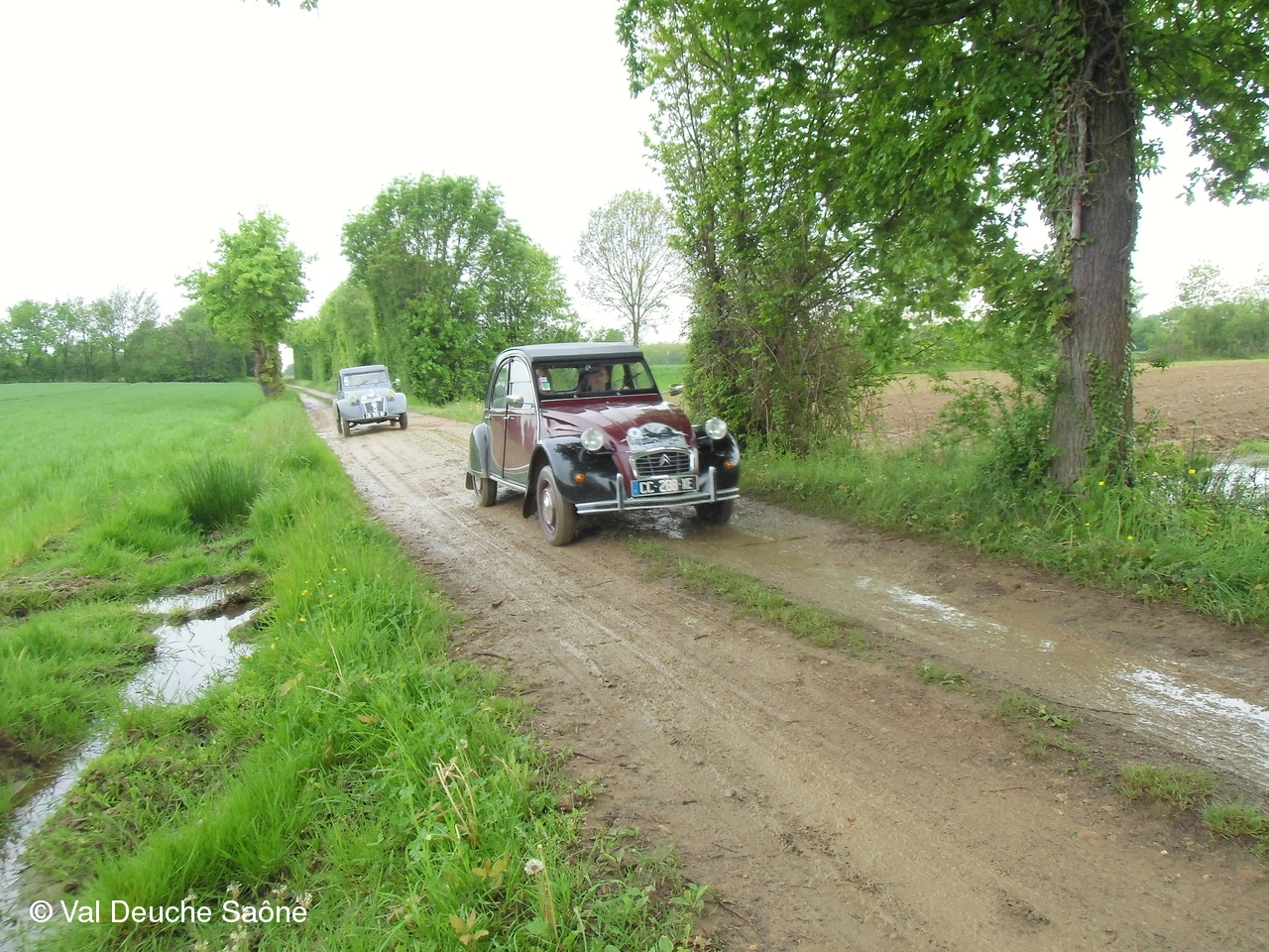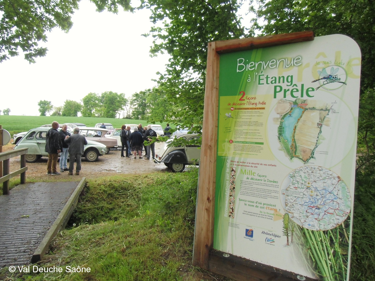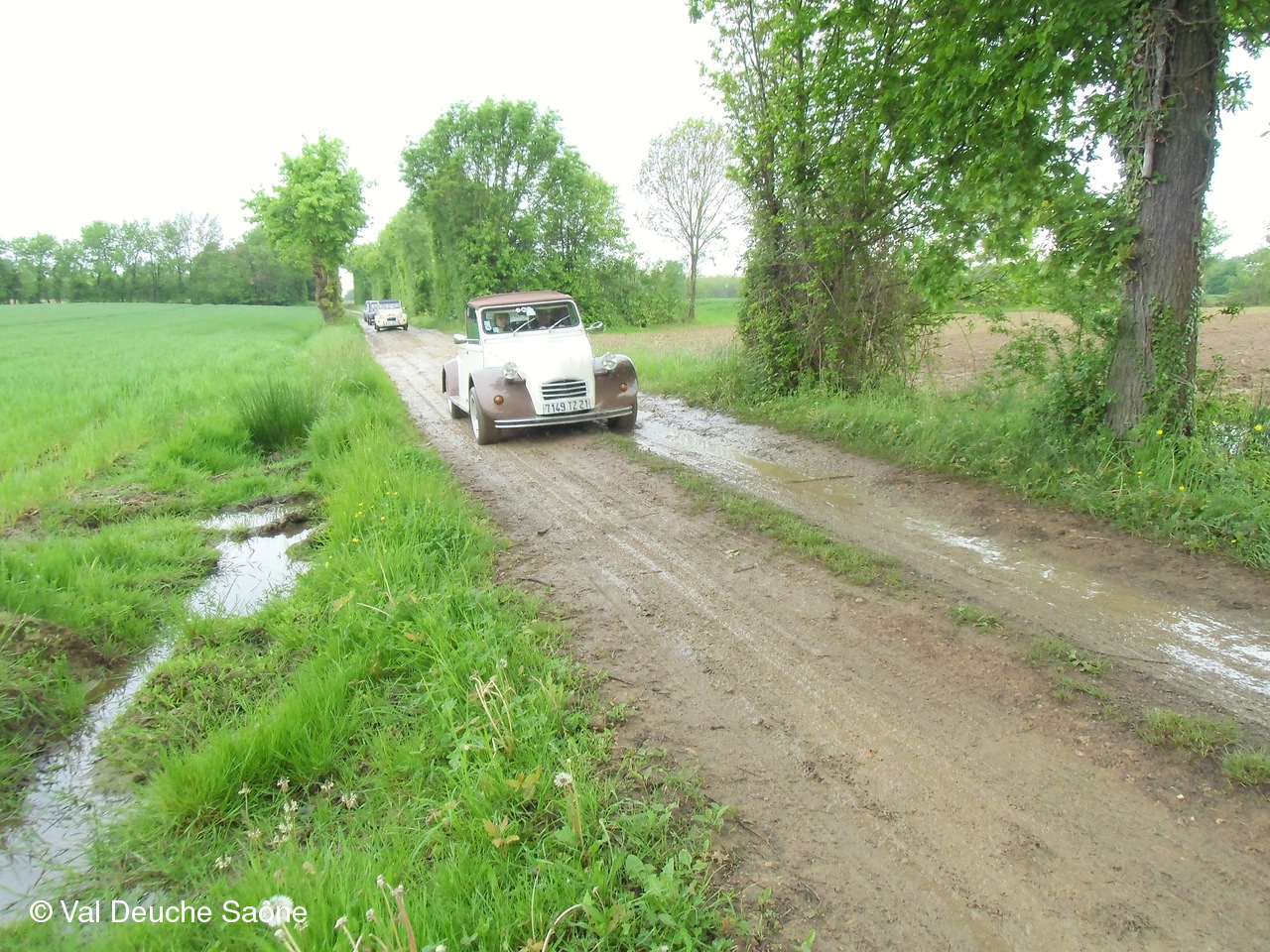 Après le traditionnel café d'accueil, nos 55 équipages venus de Saône et Loire, Bresse, Côte d'Or (6 clubs de 2Cv étaient représentés venant de Dijon, Beaune, Beaujolais, Charolles, Bresse, St Marcel et le Val Deuche) se sont dirigés en direction de la Dombes en passant par St Amour, La Chapelle de Guinchay, St Symphorien d'Ancelles pour franchir le pont de St Romain et arriver à Thoissey. Mais avant, il fallait découvrir la pièce de 2CV qui était cachée dans un sac de sable.