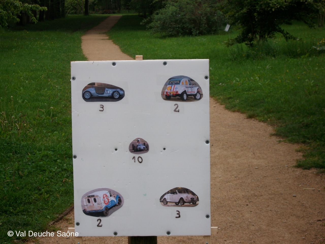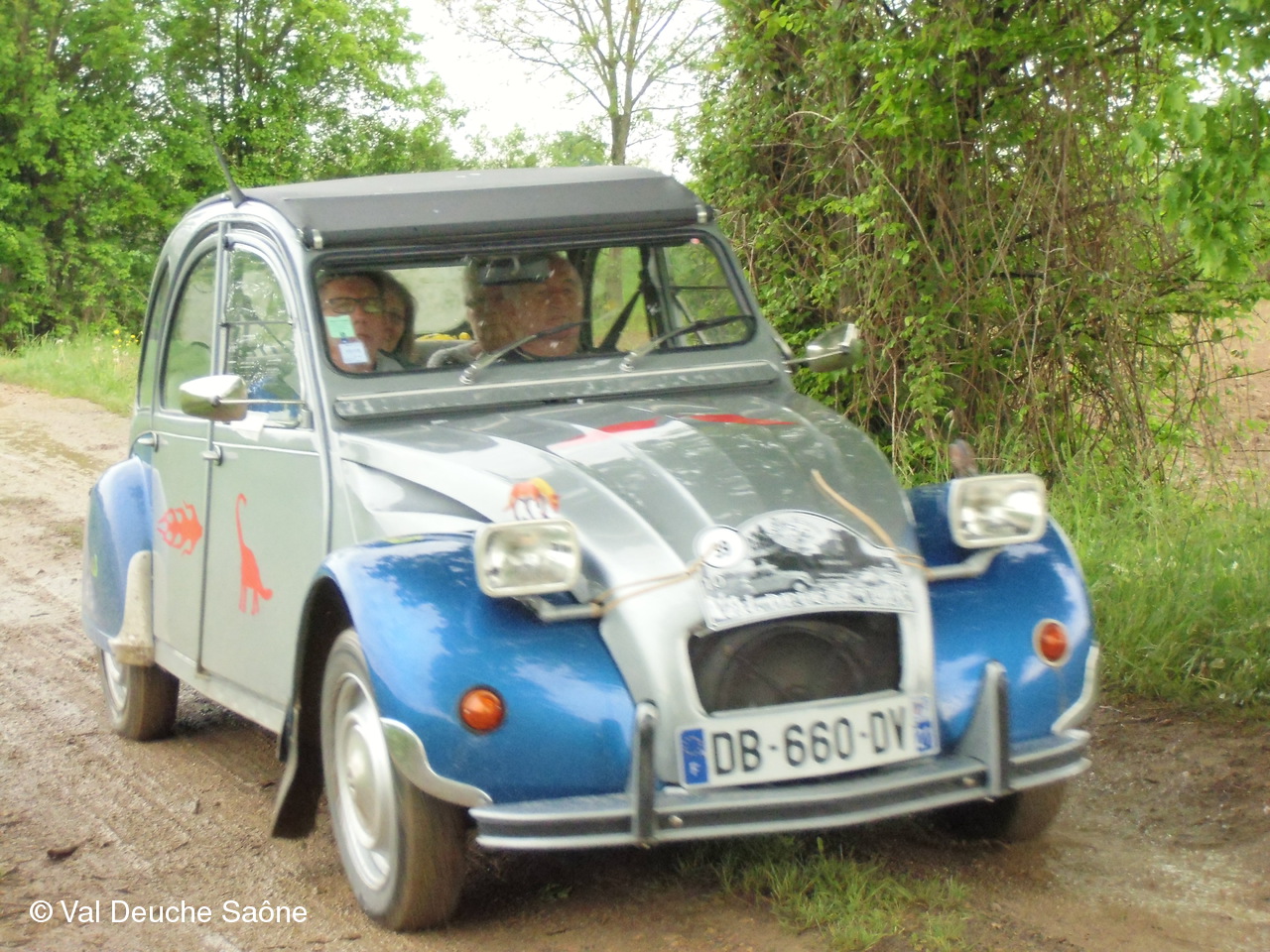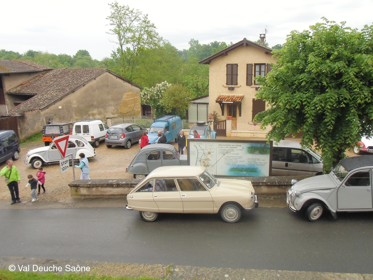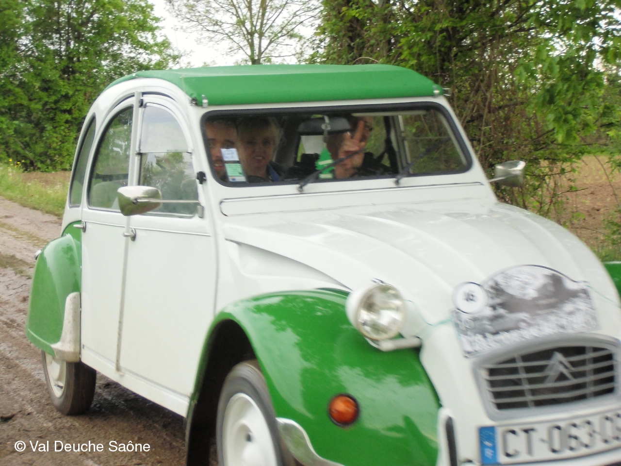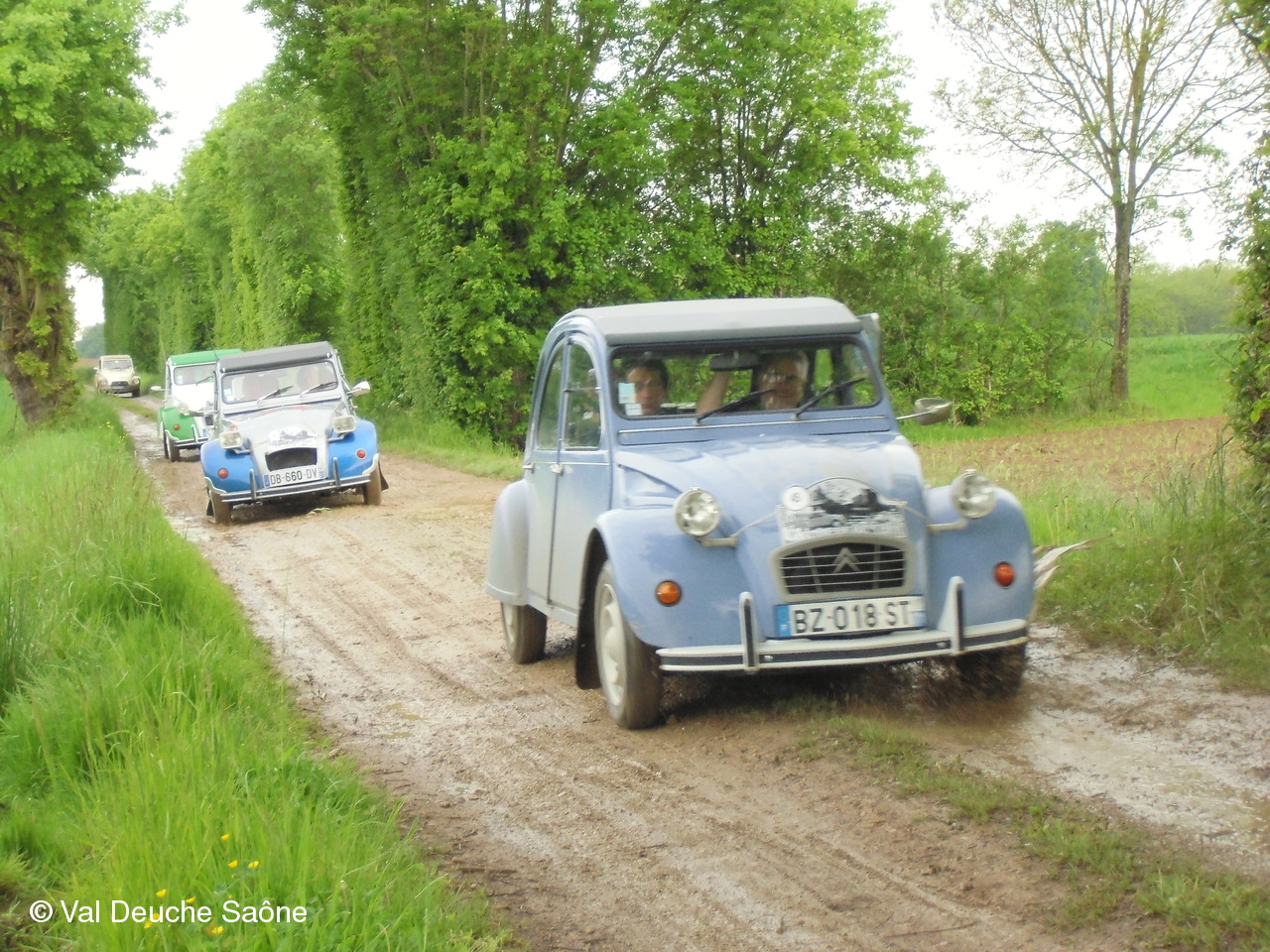Après le traditionnel café d'accueil, nos 55 équipages venus de Saône et Loire, Bresse, Côte d'Or (6 clubs de 2Cv étaient représentés venant de Dijon, Beaune, Beaujolais, Charolles, Bresse, St Marcel et le Val Deuche) se sont dirigés en direction de la Dombes en passant par St Amour, La Chapelle de Guinchay, St Symphorien d'Ancelles pour franchir le pont de St Romain et arriver à Thoissey. Mais avant, il fallait découvrir la pièce de 2CV qui était cachée dans un sac de sable.