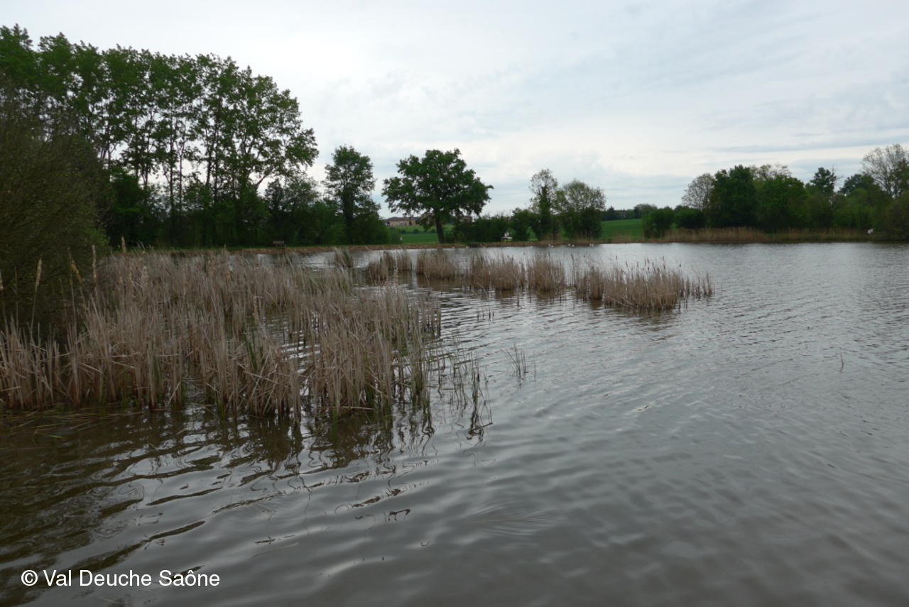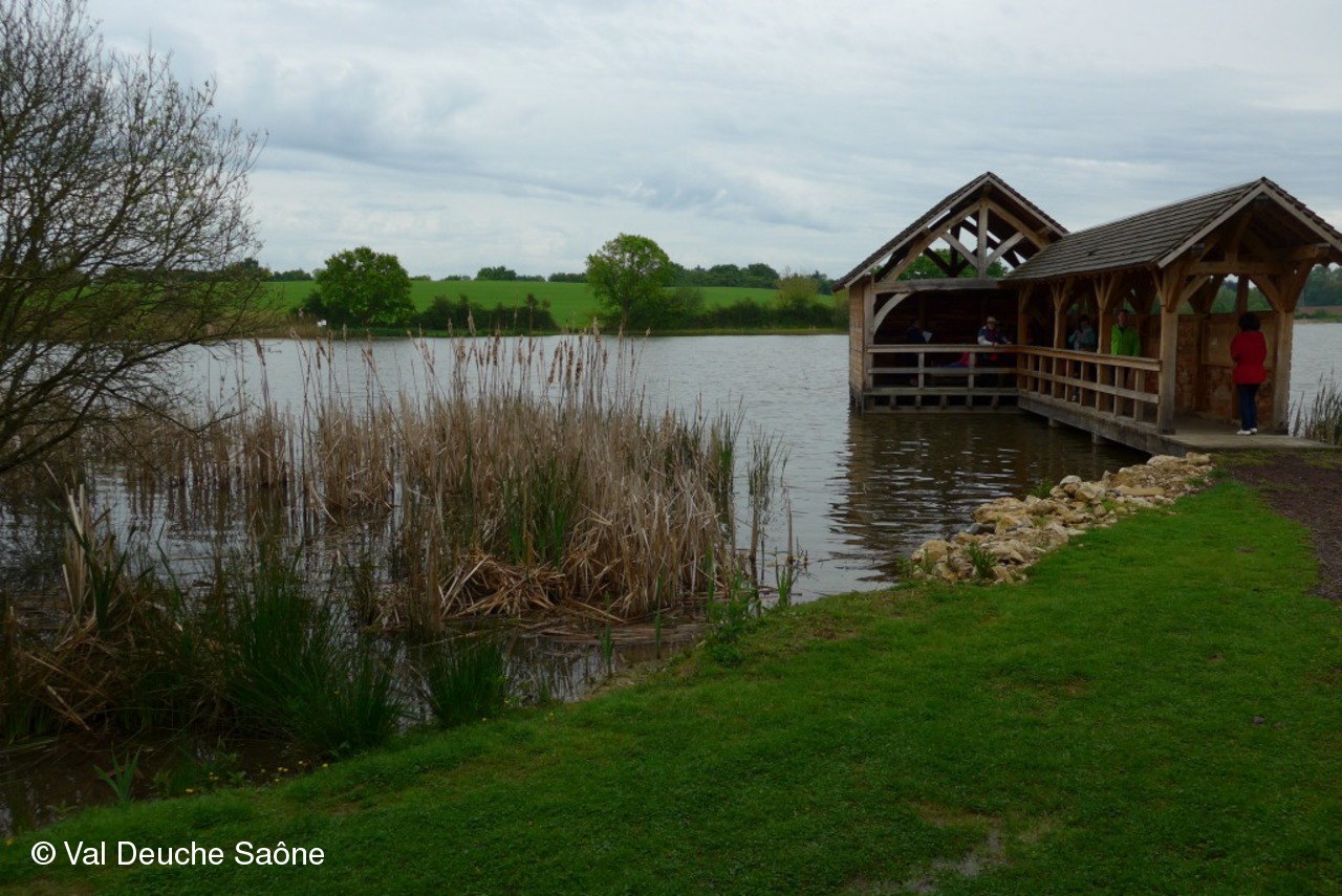 Jeu de fléchettes à l'étang de Prêle à Valeins, visible de la RD 100; agréable paysage de verdure et de roseaux; de nombreux pigeonniers le long de la route.