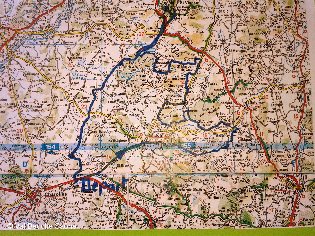 Trajet (parcours d'environ 110 km): St Bonnet de Joux, St Vincent des Prés, Vitry les Charolles, Le gros chigy, passage devant un "cimetière de 2 cv (St Martin de Salençay), Chevagny sur Guye, La Grande Bussière, St Marcellin de Cray, St Quentin (chapelle du 12ème siècle) et repas du midi à l'étang du Rousset.